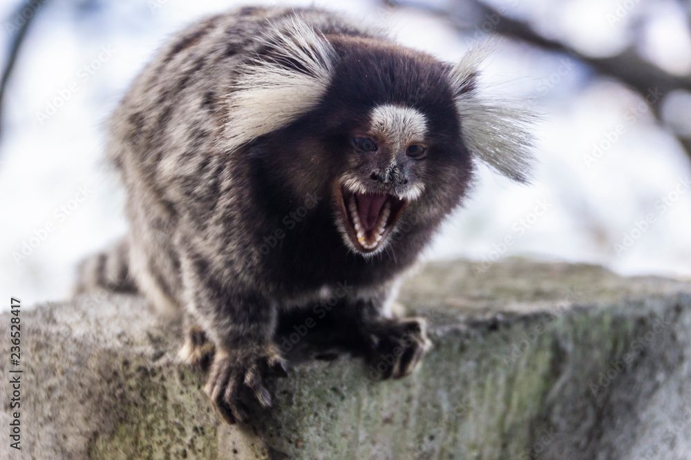 Fototapeta A monkey from the urban areas of Rio do Janeiro in an aggressive attitude while