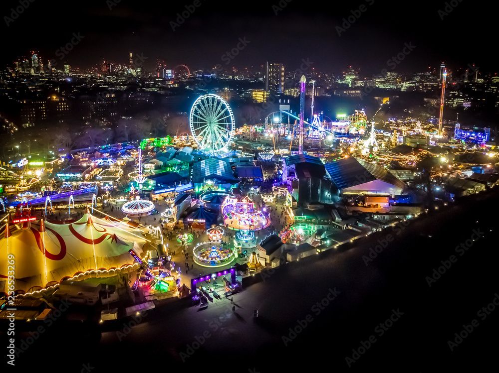 Fototapeta Aerial view of Christmas funfair in Hyde park, London