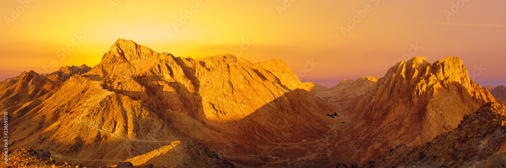 Fototapeta Amazing Sunrise at Sinai Mountain, Beautiful dawn in Egypt, early morning view o