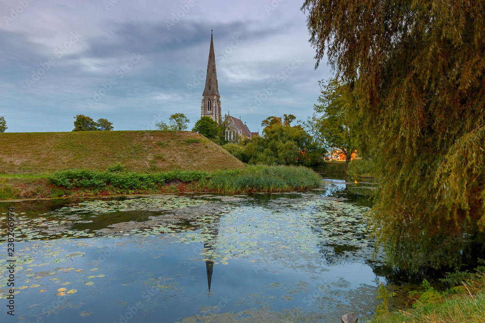 Fototapeta Copenhagen. Anglican church at sunset.