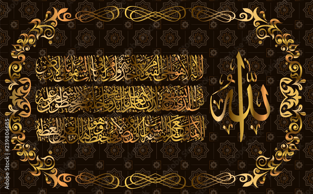 Fototapeta Arabic calligraphy 255 ayah, Sura Al Bakara Al-Kursi means Throne of Allah
