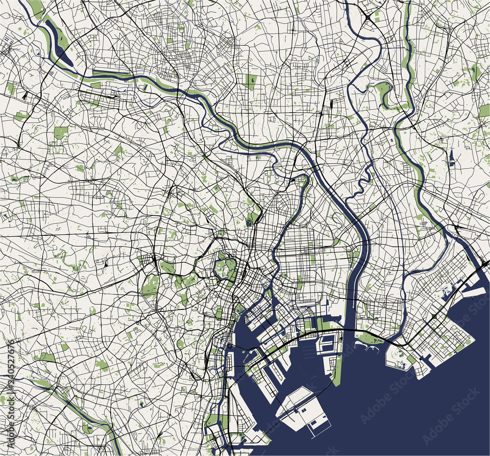 Fototapeta map of the city of Tokyo, Kanto, Island Honshu, Japan
