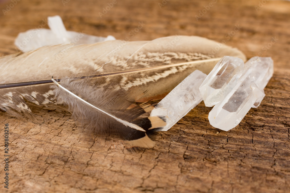 Fototapeta Quartz Crystals with Feathers
