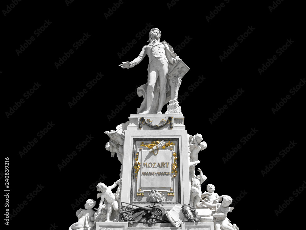 Fototapeta Sculpture of Wolfgang Amadeus Mozart is isolated on black background