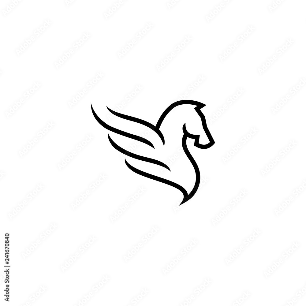 Fototapeta Outline monoline pegasus logo, horse and wing icon vector