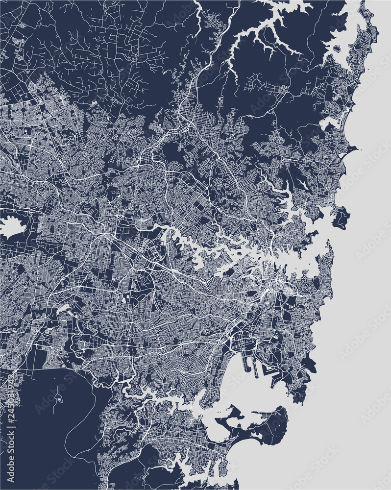 Fototapeta map of the city of Sydney, New South Wales, Australia