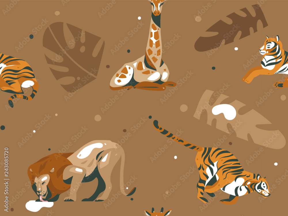 Fototapeta Hand drawn vector abstract cartoon modern graphic African Safari Nature illustra