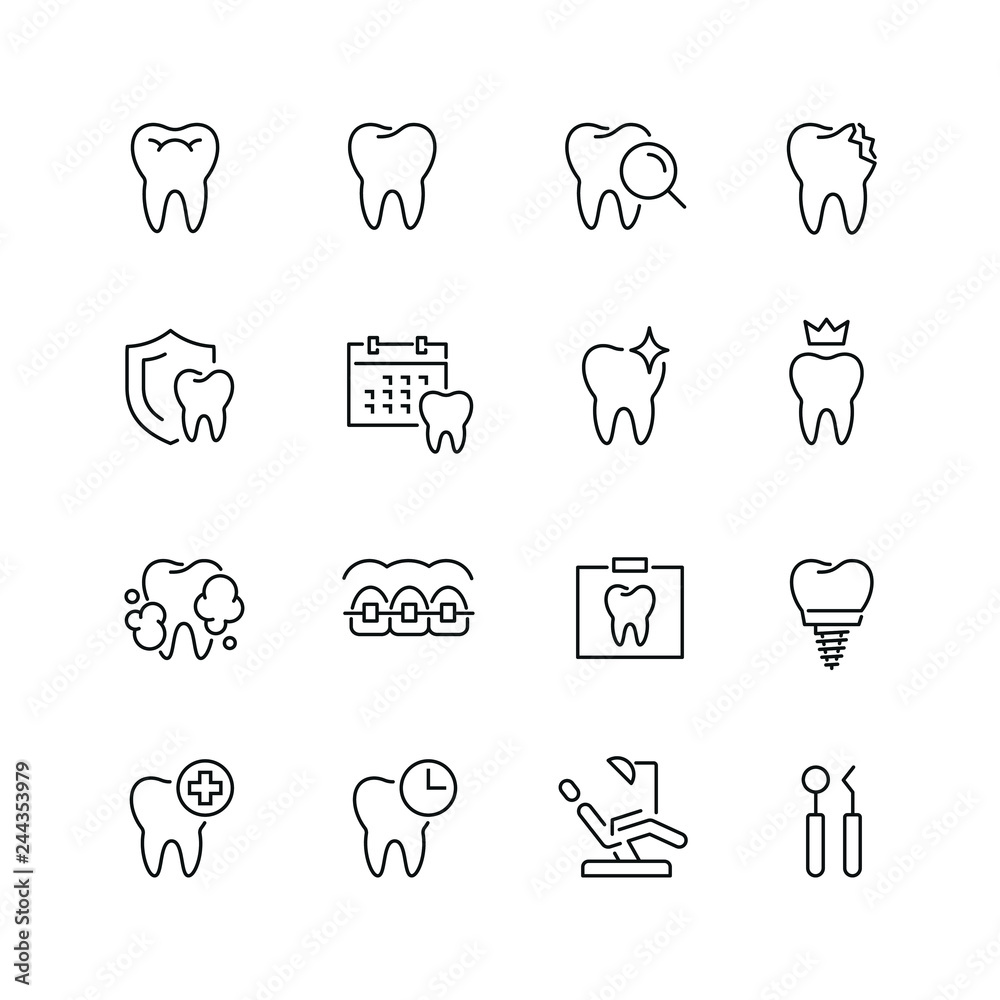 Fototapeta Dental related icons: thin vector icon set, black and white kit