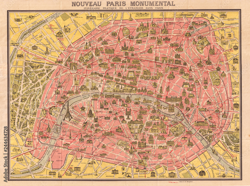 Fototapeta 1920, Leconte Pocket Map of Paris, France, with Eiffel Tower and Metro