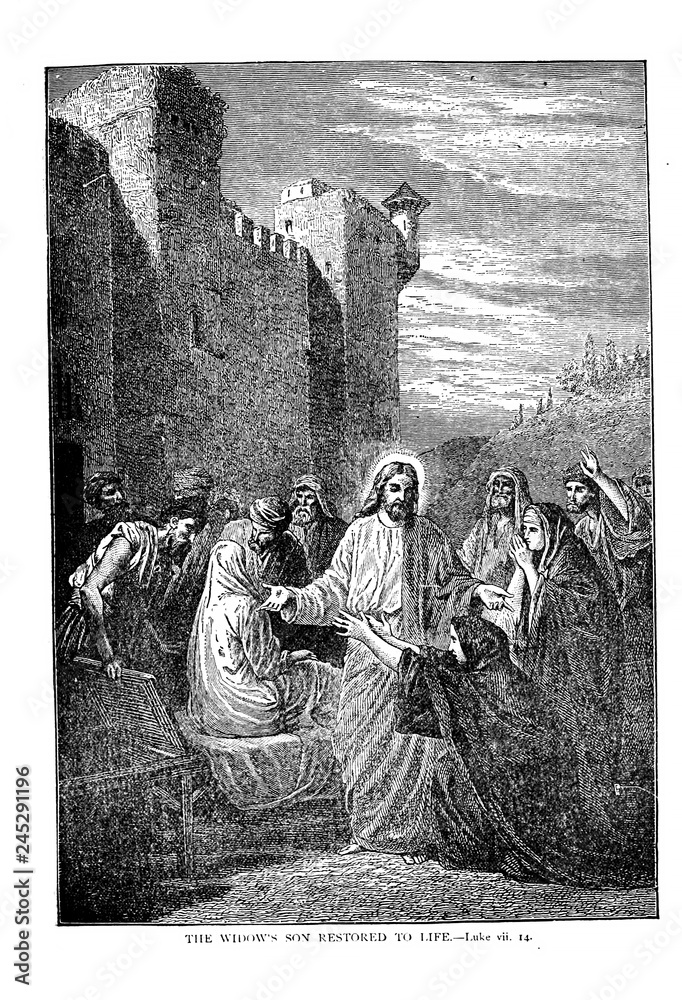 Fototapeta Jesus raises a widow's son.