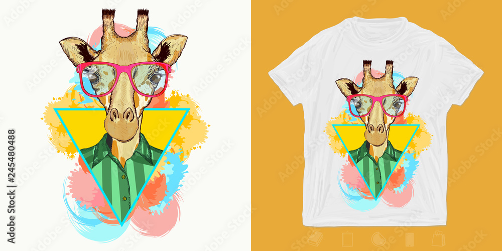 Fototapeta Hipster giraffe, fashion animal
