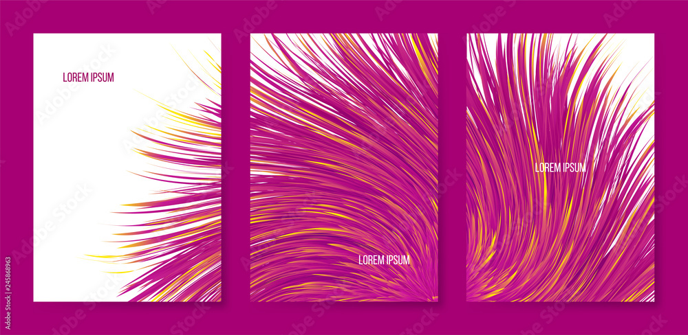 Fototapeta Vector abstract banners with colorful furry bunch, triptych with imitation synthetic vortex fur