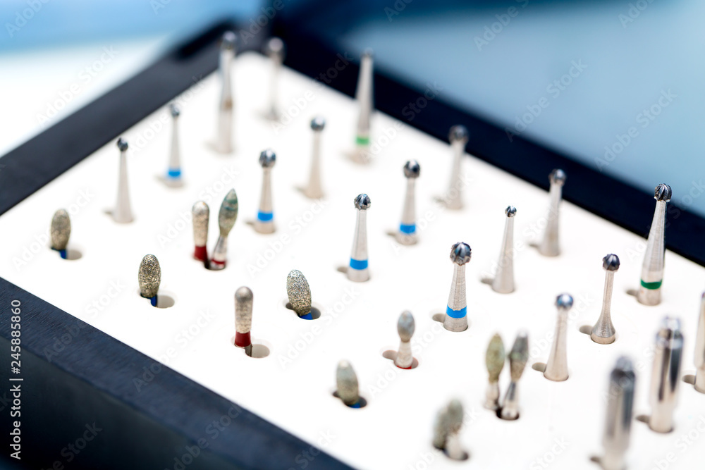 Fototapeta Dental nozzles or drill heads for the drill in a box
