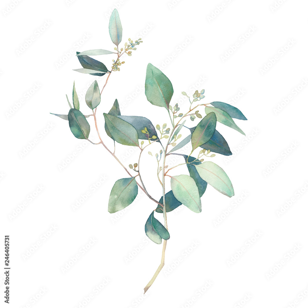 Fototapeta Watercolor eucalyptus branches with round leaves