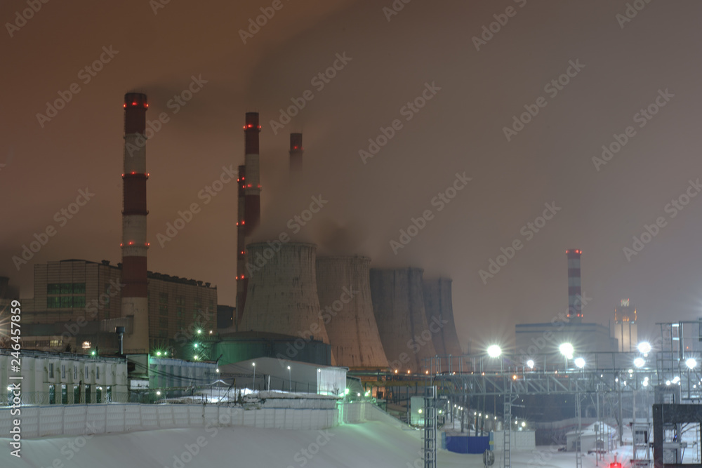Fototapeta Night industrial Moscow cityscape. Long exposure image.