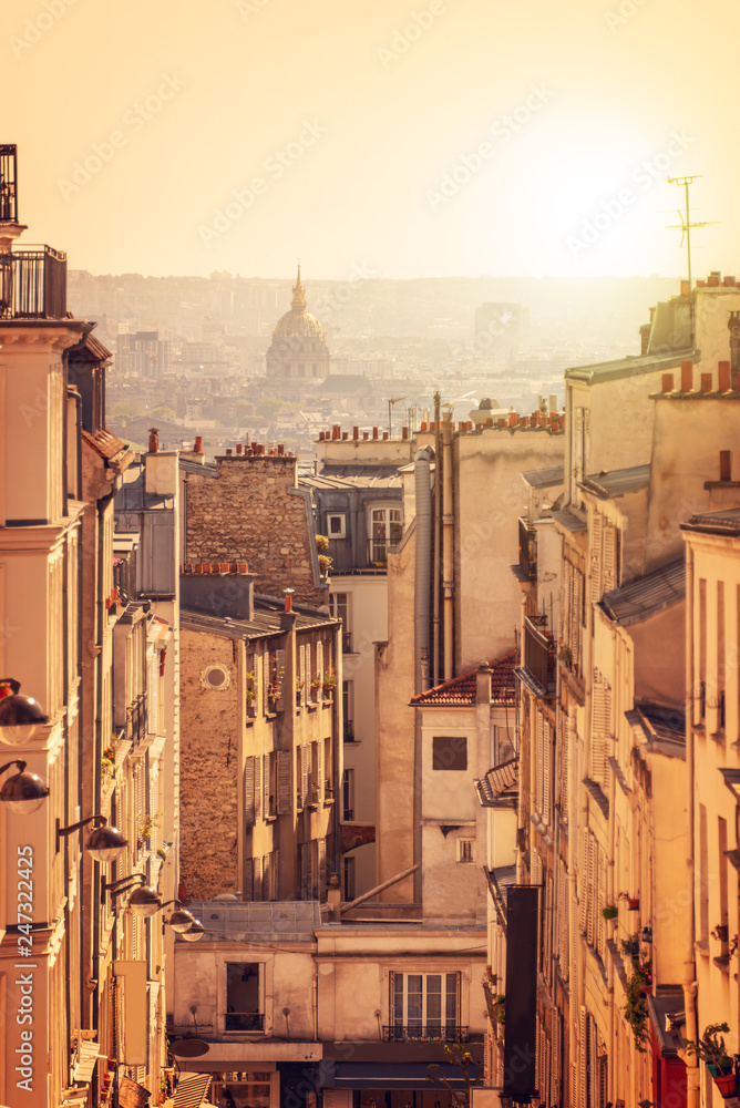Fototapeta Panorama of Paris, view from the hill of Montmartre, in Paris France