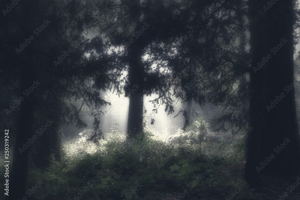 Fototapeta mysterious light in the forest