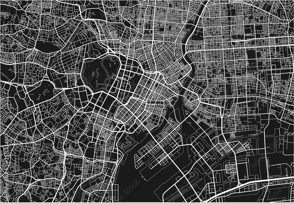 Fototapeta Black and white vector city map of Tokyo with well organized separated layers