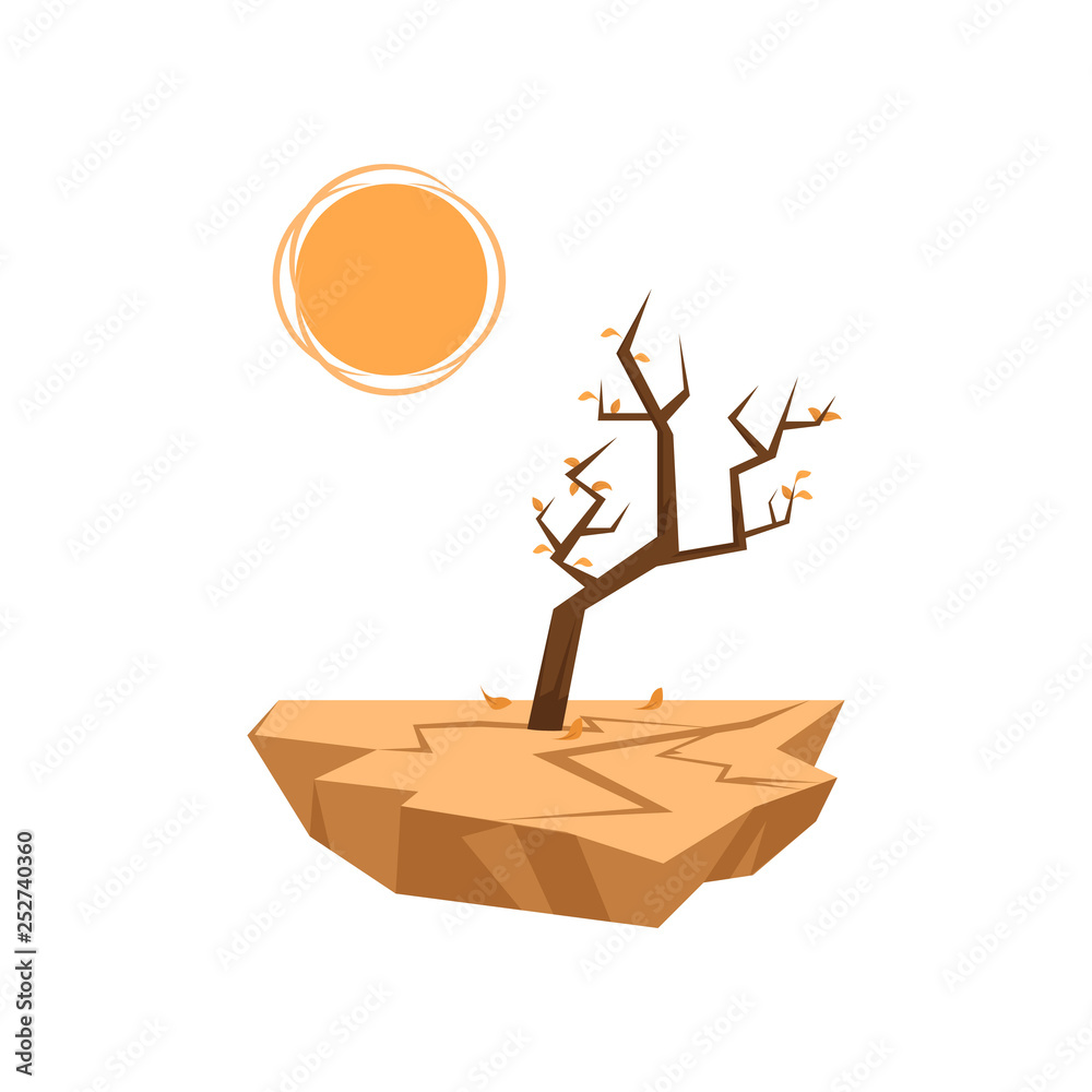 Fototapeta Dead trees sprout in dry soil isolated on white background