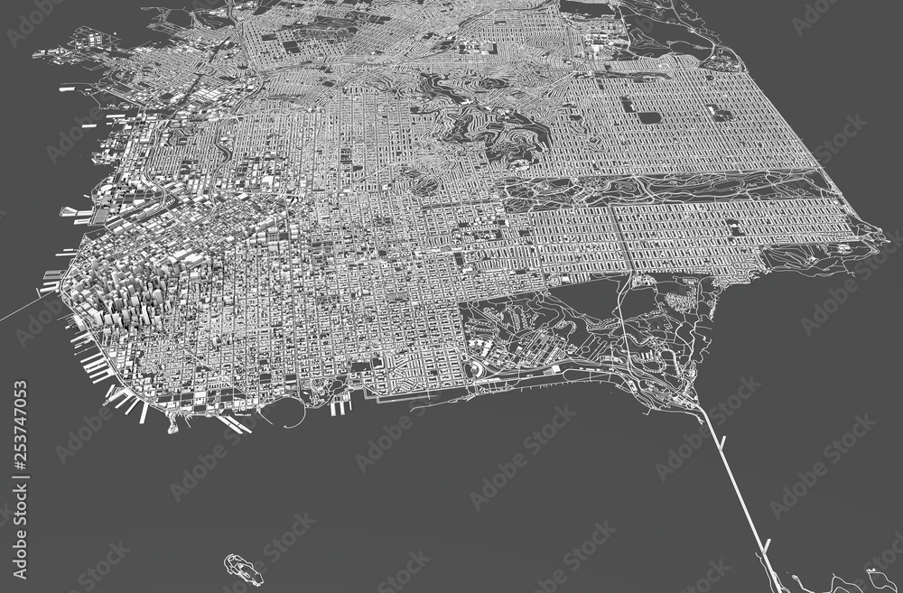 Fototapeta Satellite view of San Francisco, map, 3d buildings