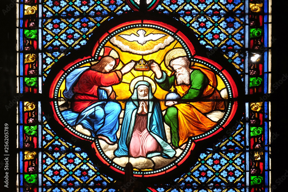 Fototapeta Crowning of the Virgin Mary, stained glass window in the Basilica of Saint Cloti