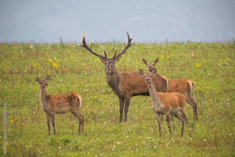 Fototapeta Herd of red deer, cervus elaphus, in rutting season