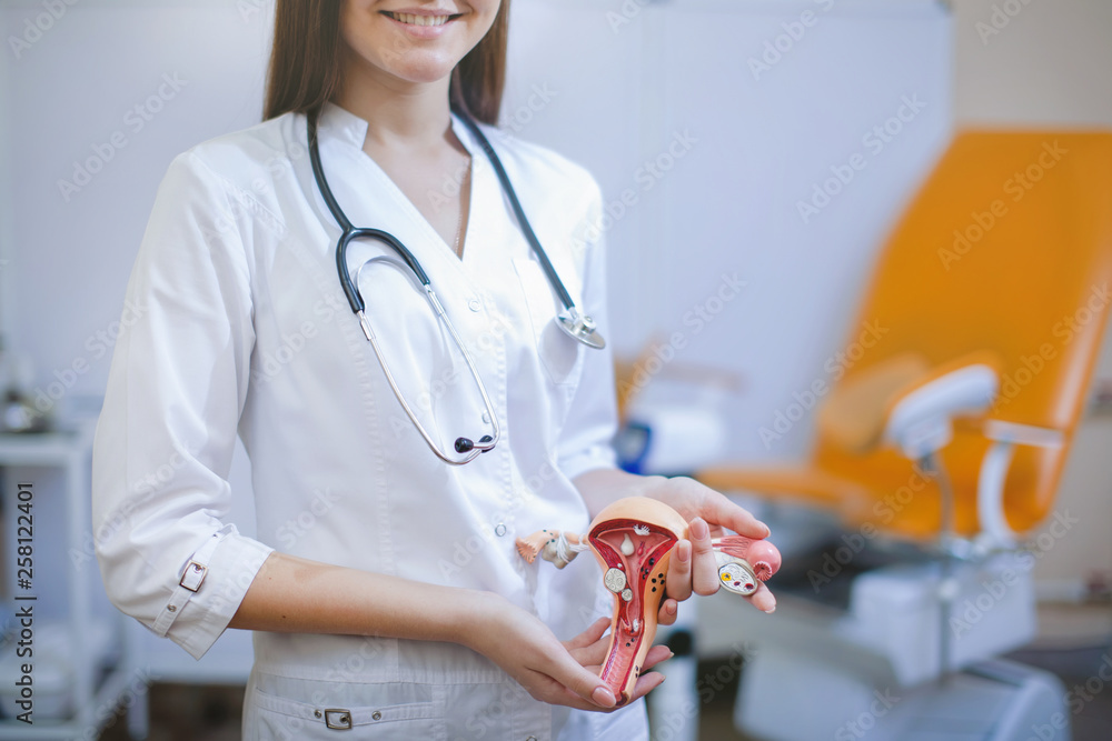 Fototapeta Cheerful gynecologist in the cabinet