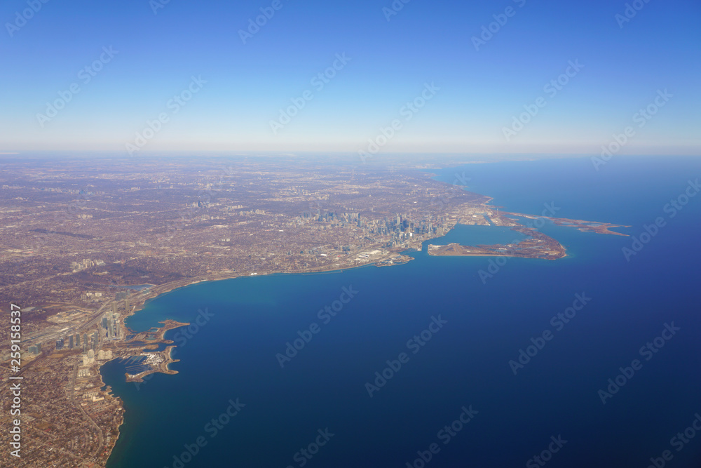 Fototapeta Aerial landscape view of the city of Toronto skyline and Lake Ontario in Ontario