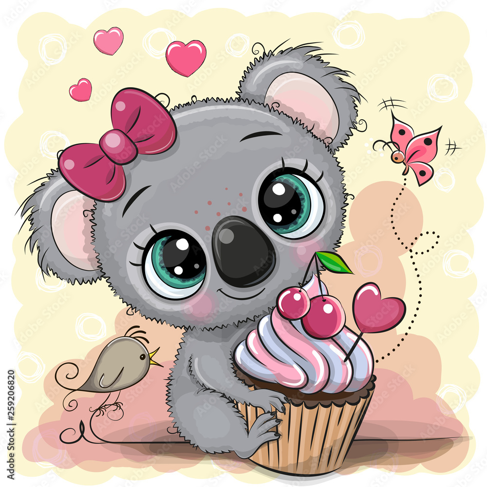 Fototapeta Greeting card Cartoon Koala with cake