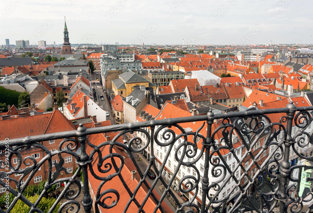 Fototapeta Balcony and cityscape of Copenhagen with churches and historical building, Denmark