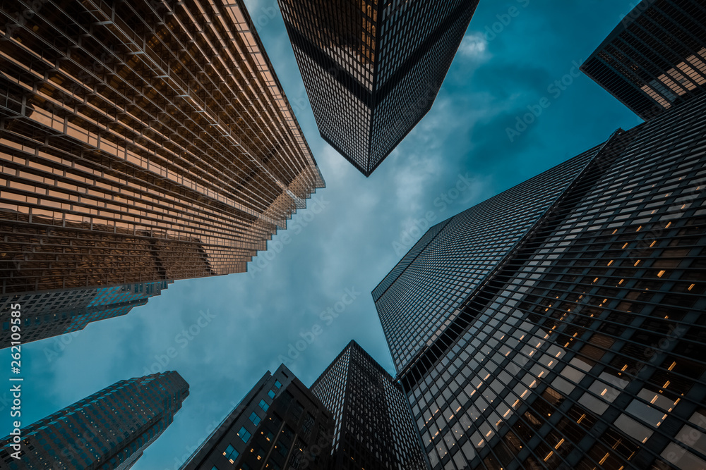 Fototapeta day view of Toronto city skyscrapers; look up;
