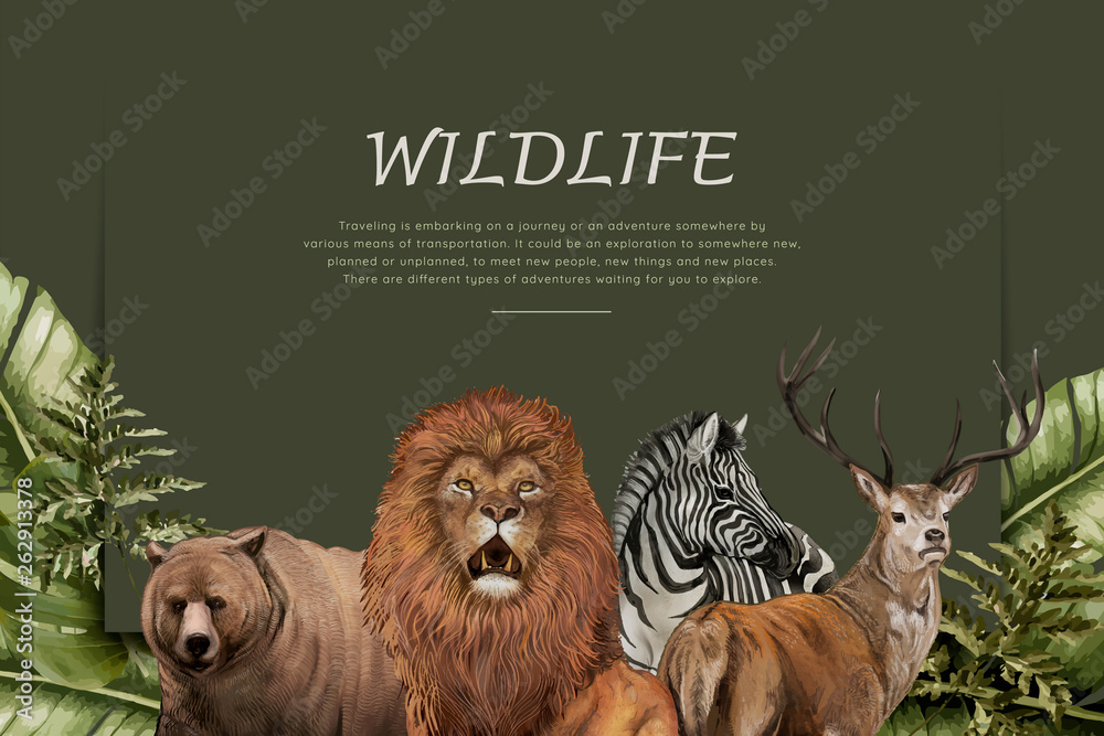 Fototapeta Hand drawn wild animals
