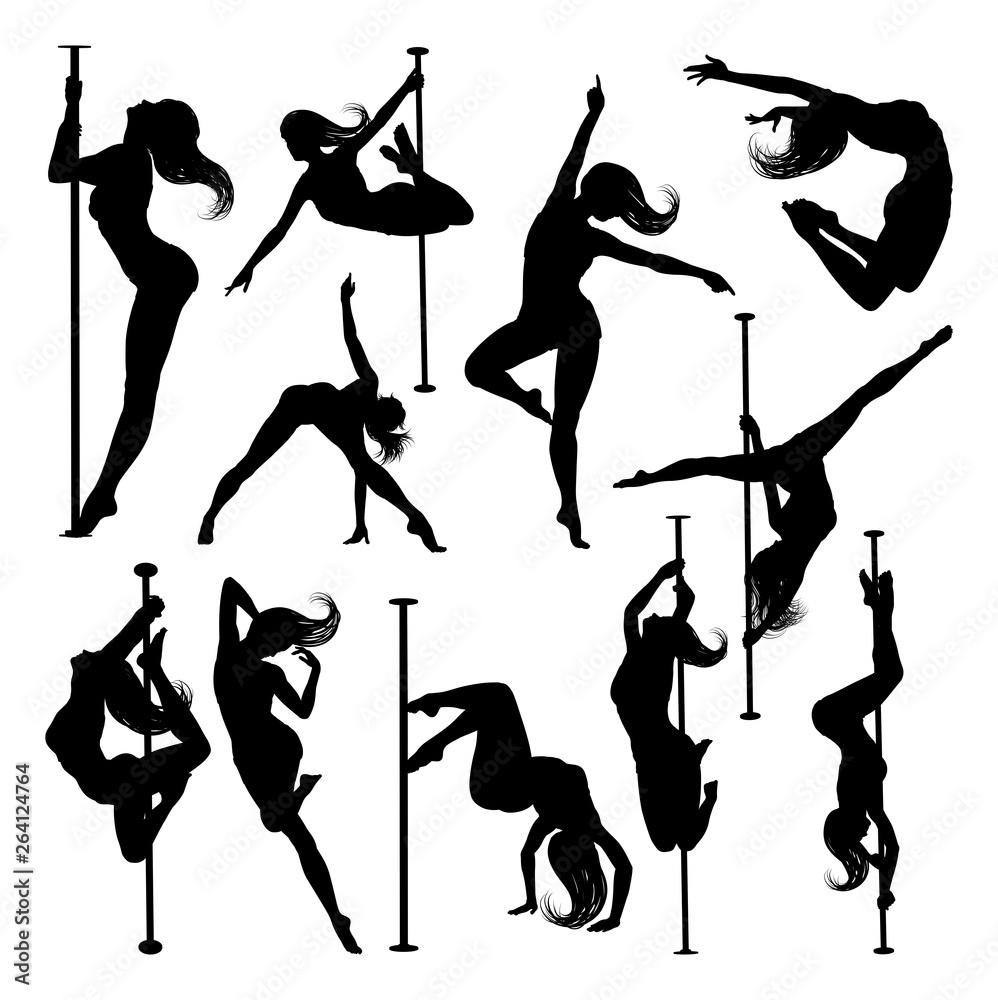 Fototapeta A set of women pole dancers exercising for fitness in silhouette