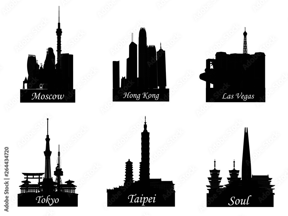Fototapeta Vector Landmark, Moscow City, Hong Kong, Las Vegas, Tokyo, Taipei, Seoul