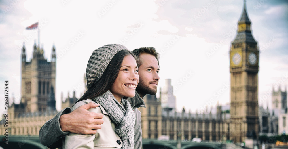 Fototapeta Happy couple by Big Ben Parliament, River Thames, London