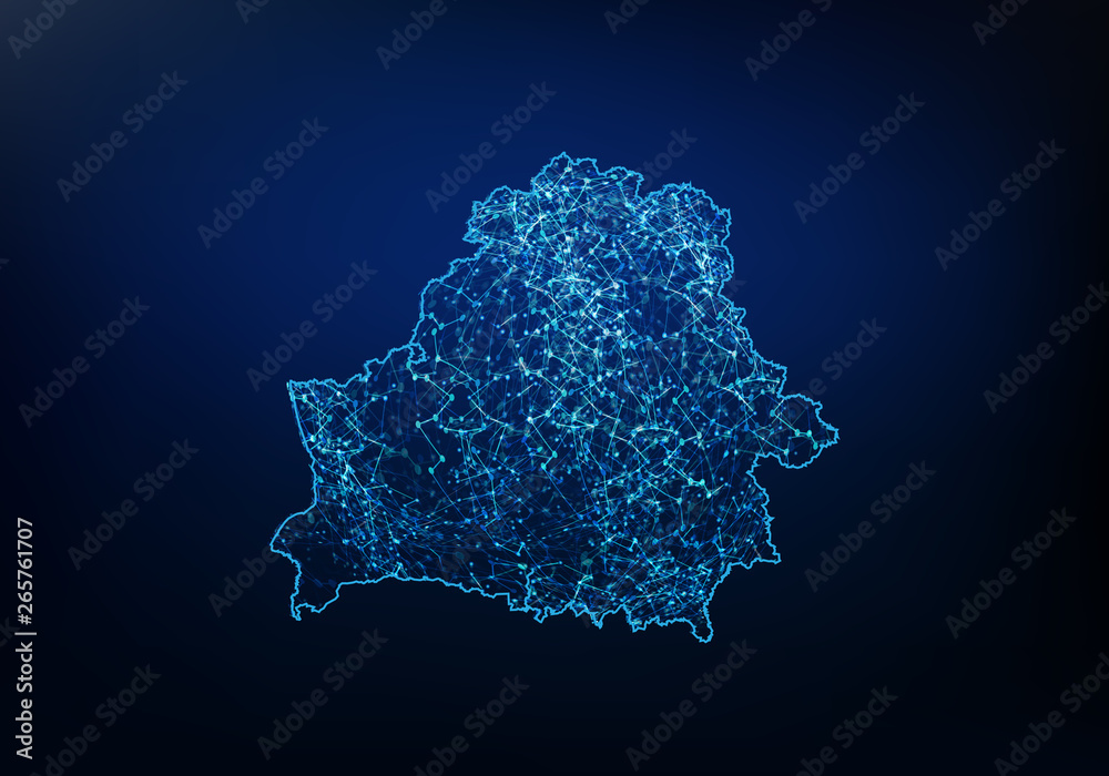 Fototapeta Abstract of belarus map network, internet and global connection concept, Wire Frame 3D mesh polygonal network line, design sphere, dot and structure