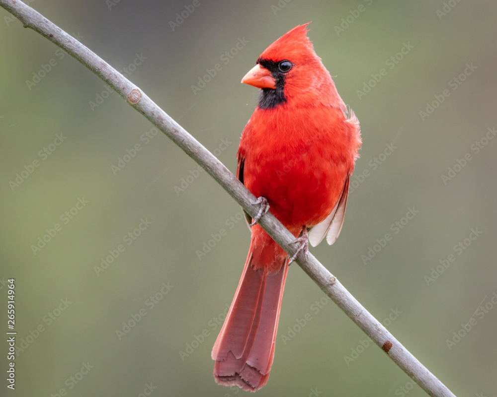 Fototapeta Red male cardinal sitting on a perch.