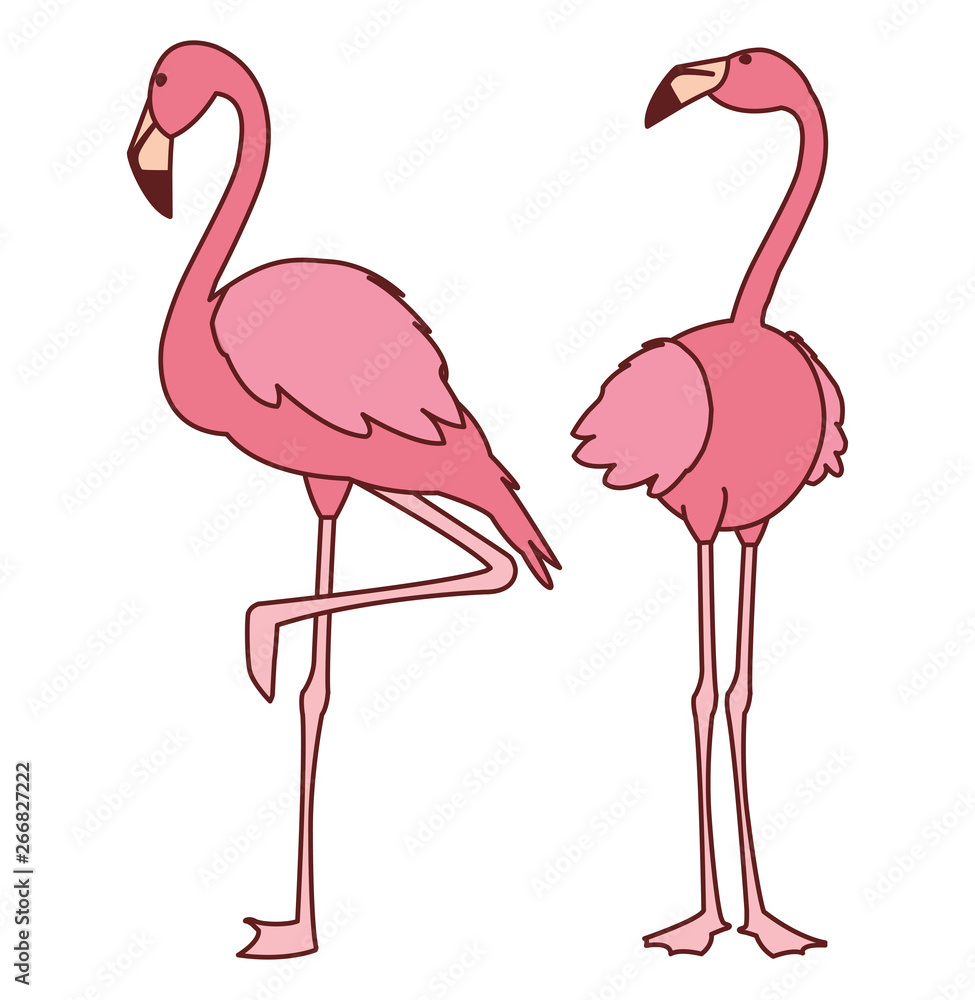 Fototapeta exotic pink flemish couple birds with heads up