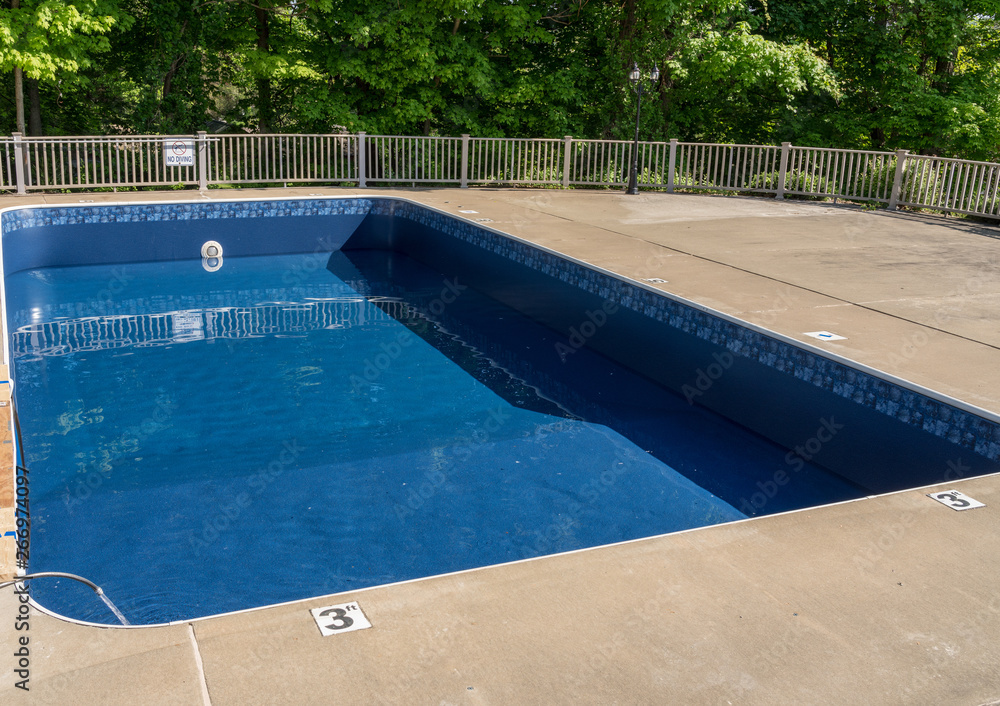 Fototapeta In ground swimming poolwith new vinyl liner being refilled with water ready for