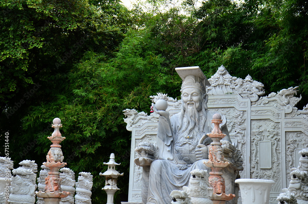 Fototapeta Marble carved statues in Guan Yin shrine in Bangkok, Thailand