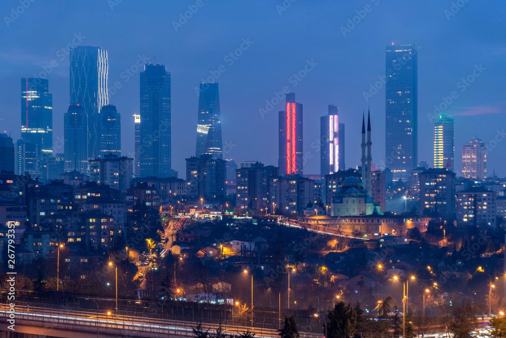 Fototapeta Mosque and 4.Levent Business Skyscrapers