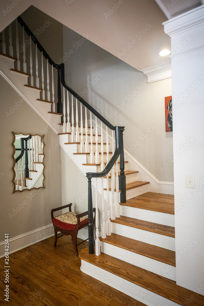 Fototapeta Wood Stairs Stairway in a Large House with a bannister