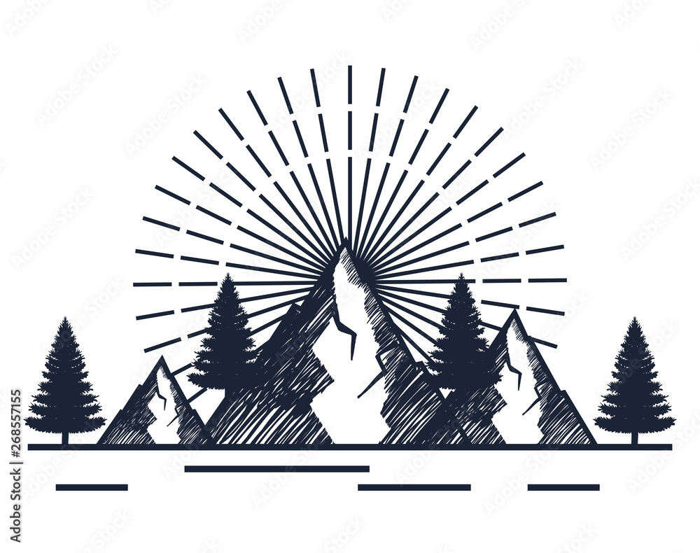 Fototapeta snowy mountains with pines trees to wanderlust adventure