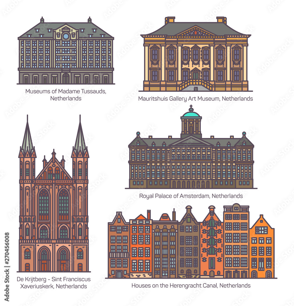 Fototapeta Set of isolated Netherlands or Holland buildings