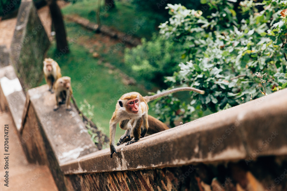 Fototapeta Small Monkeys Sitting On a Ledge in Sri Lanka