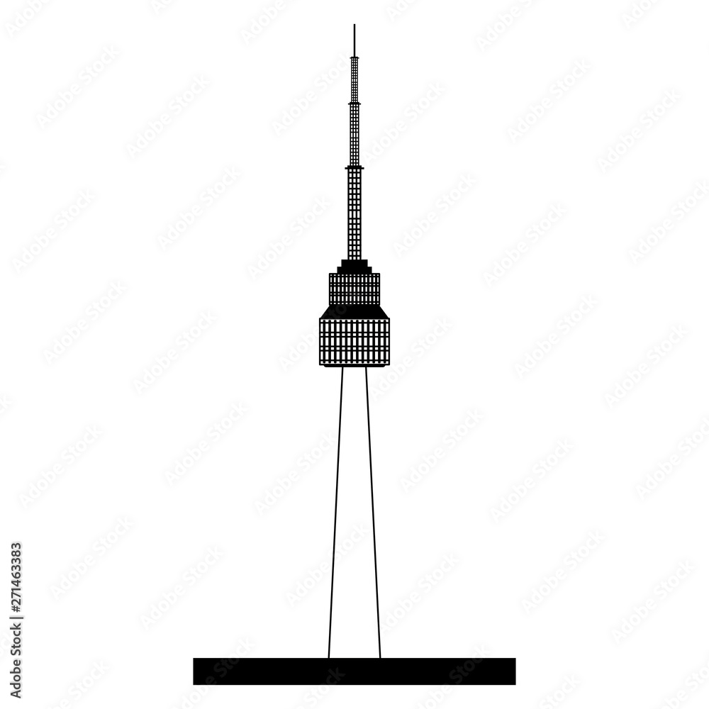 Fototapeta N seoul tower icon cartoon in black and white