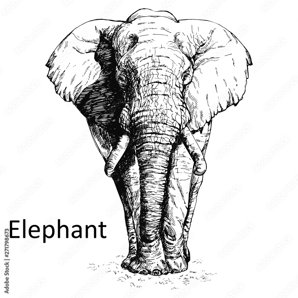 Fototapeta Hand drawn sketch style elephant isolated on white background