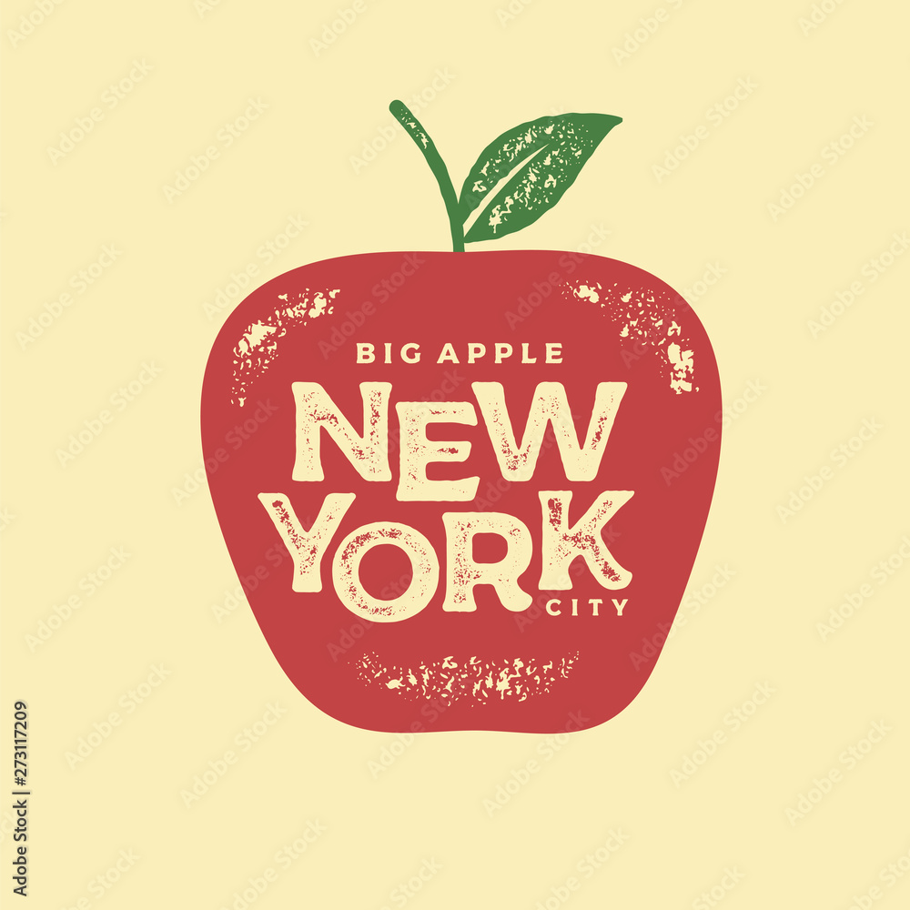 Fototapeta New York big apple red print Vector illustration