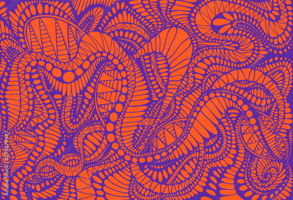 Fototapeta Abstract pattern, ethno style, stylish background, purple color line, isolated on orange background