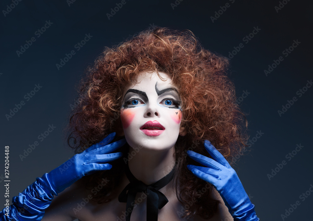 Fototapeta Woman mime with theatrical makeup. Studio shot.